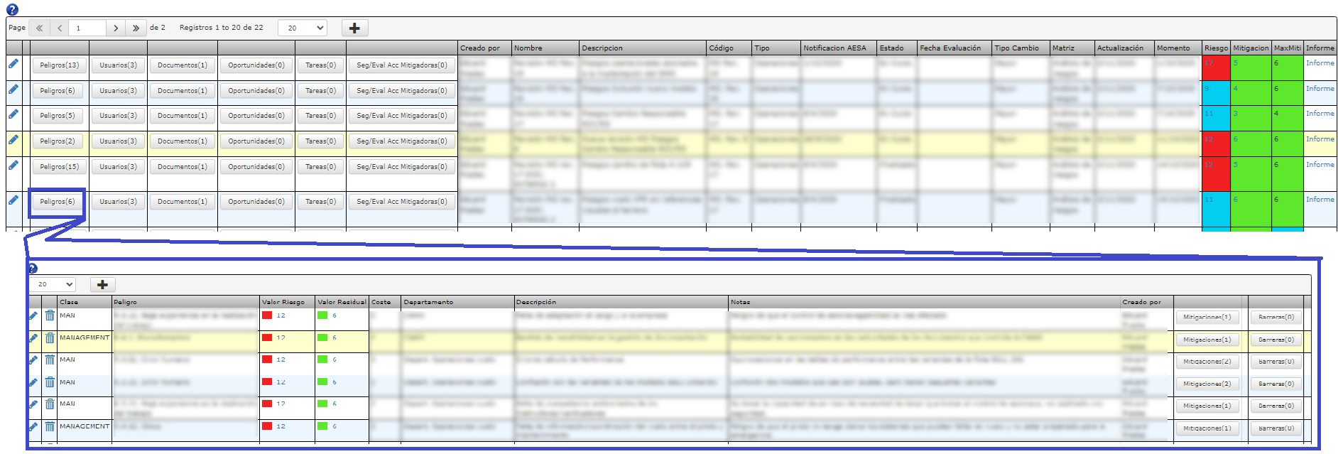 Cada peligro se gestiona, con las clasificaciones, cuantificación del riesgo antes y después de las barreras existentes y mitigaciones.